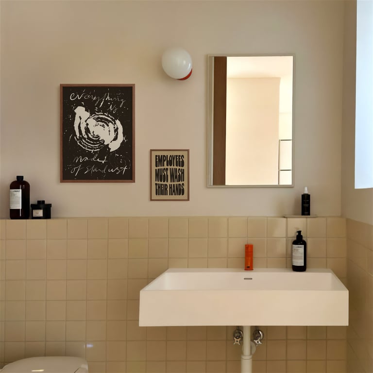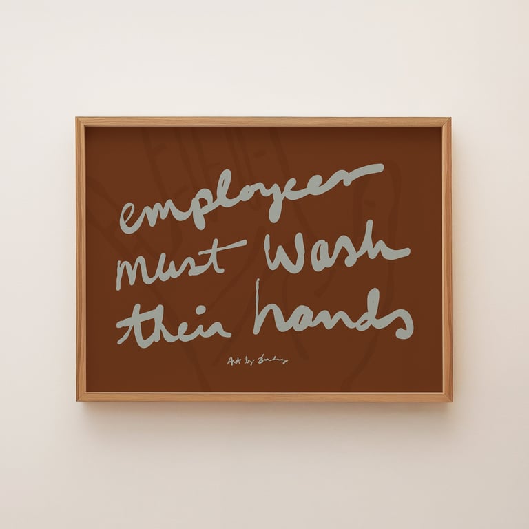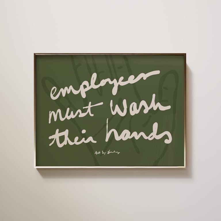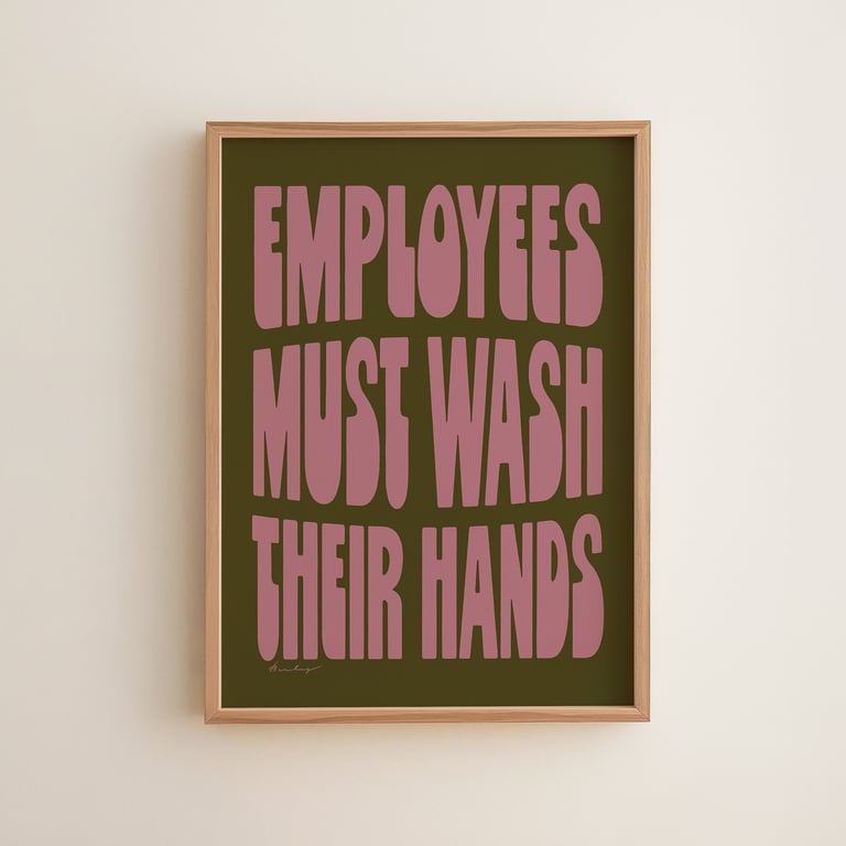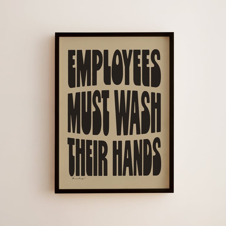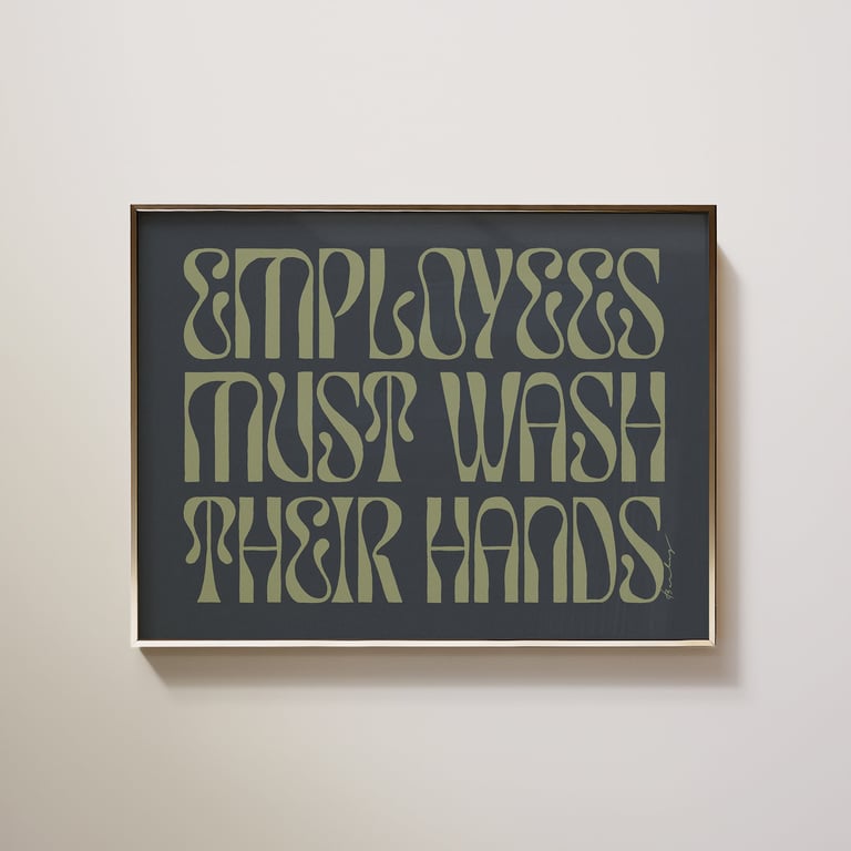 Okay, so some businesses are required to post notices with instructions to wash your hands. Makes sense. But why can't they also be art? I looked it up — no law requires embossed clip art and Helvetica! So to the aesthetes out there bemoaning the choices for your businesses, these are for you. Hand-sketched and hand-lettered reminders to wash your hands before returning to work. Maybe it'll even boost your health grade? You never know!